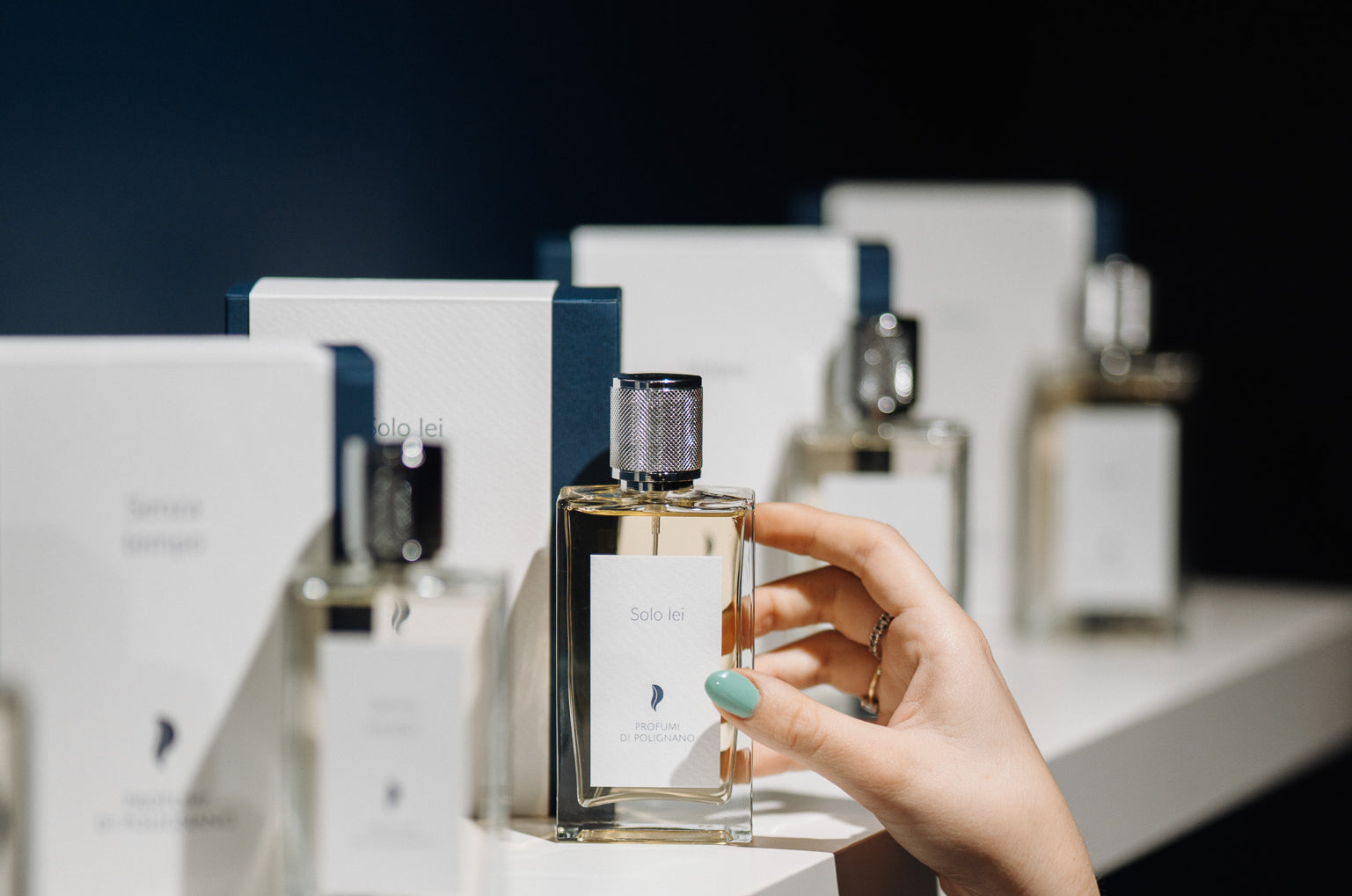La collezione racconta Polignano vista dalla terra e dal mare, ne attraversa gli stretti vicoli e dialoga con i suoi personaggi, raccogliendo umori e sentimenti che vengono restituiti sotto forma di storie ed emozioni olfattive.